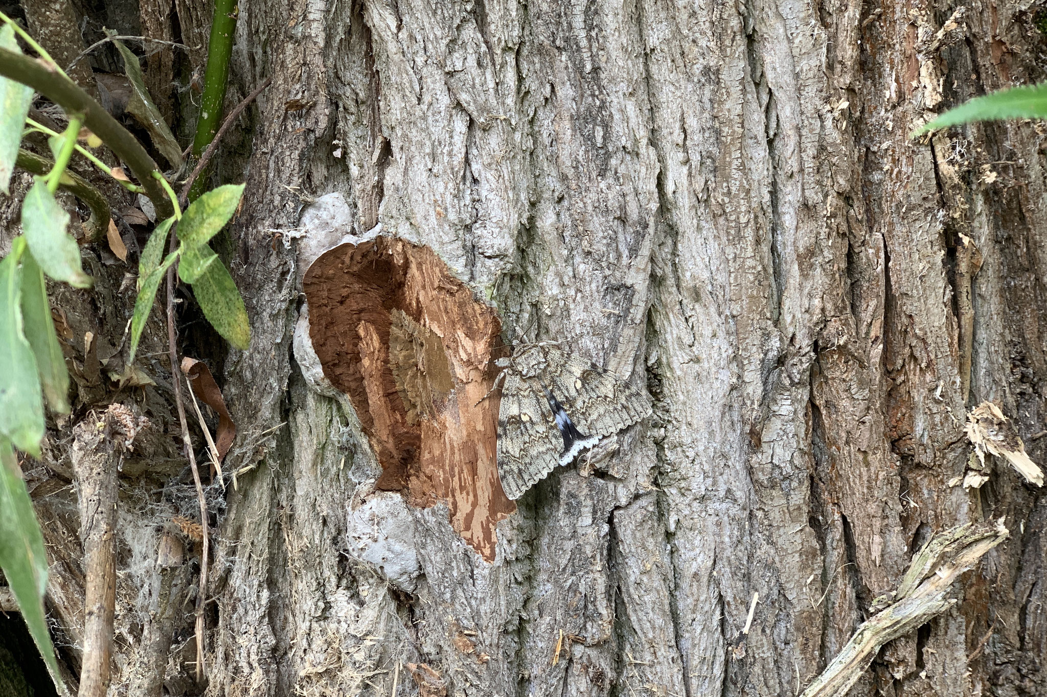 Zum Abschluss hatte Prof. Dr. Füldner noch eine Überraschung parat: Das Blaue Ordensband, ein wunderschöner Nachtfalter aus eigener Nachzucht aus der Familie der Eulenfalter, der nun in die Freiheit entlassen wurde.